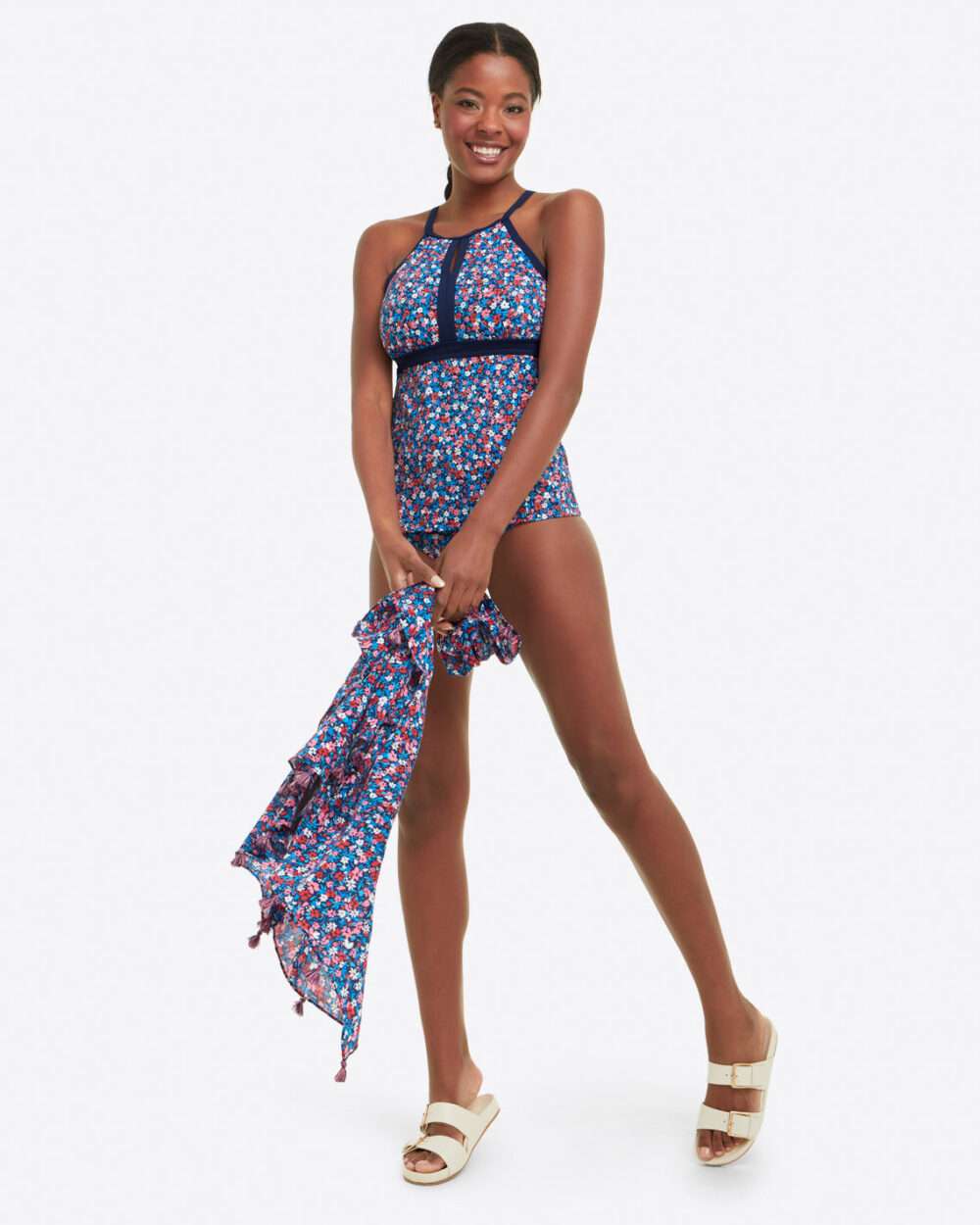 Key to a great look. Straight or curvy, large chest or small, there?s a little magic in this keyhole tankini. It showcases shoulders like a halter, but without the neck pressure. The empire waist flatters so many shapes. The fabric has built-in UPF 50 protection so you can play in the rays without worry, and it comes in classic prints exclusive to our partnership with Land’s End.