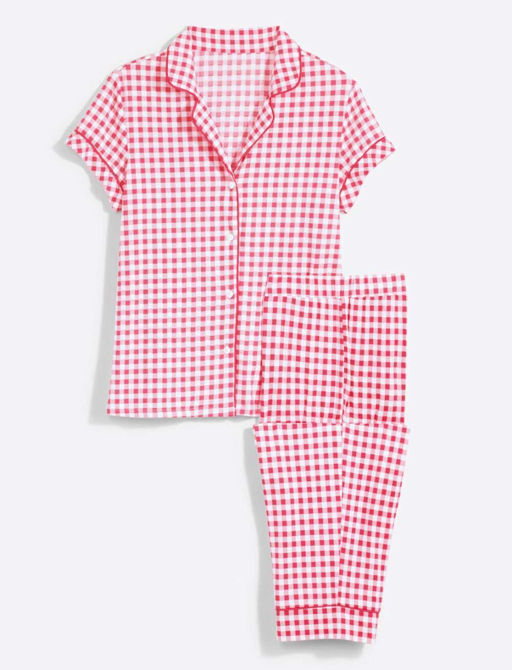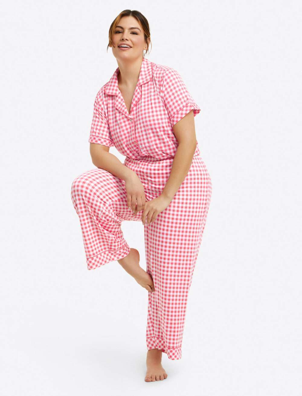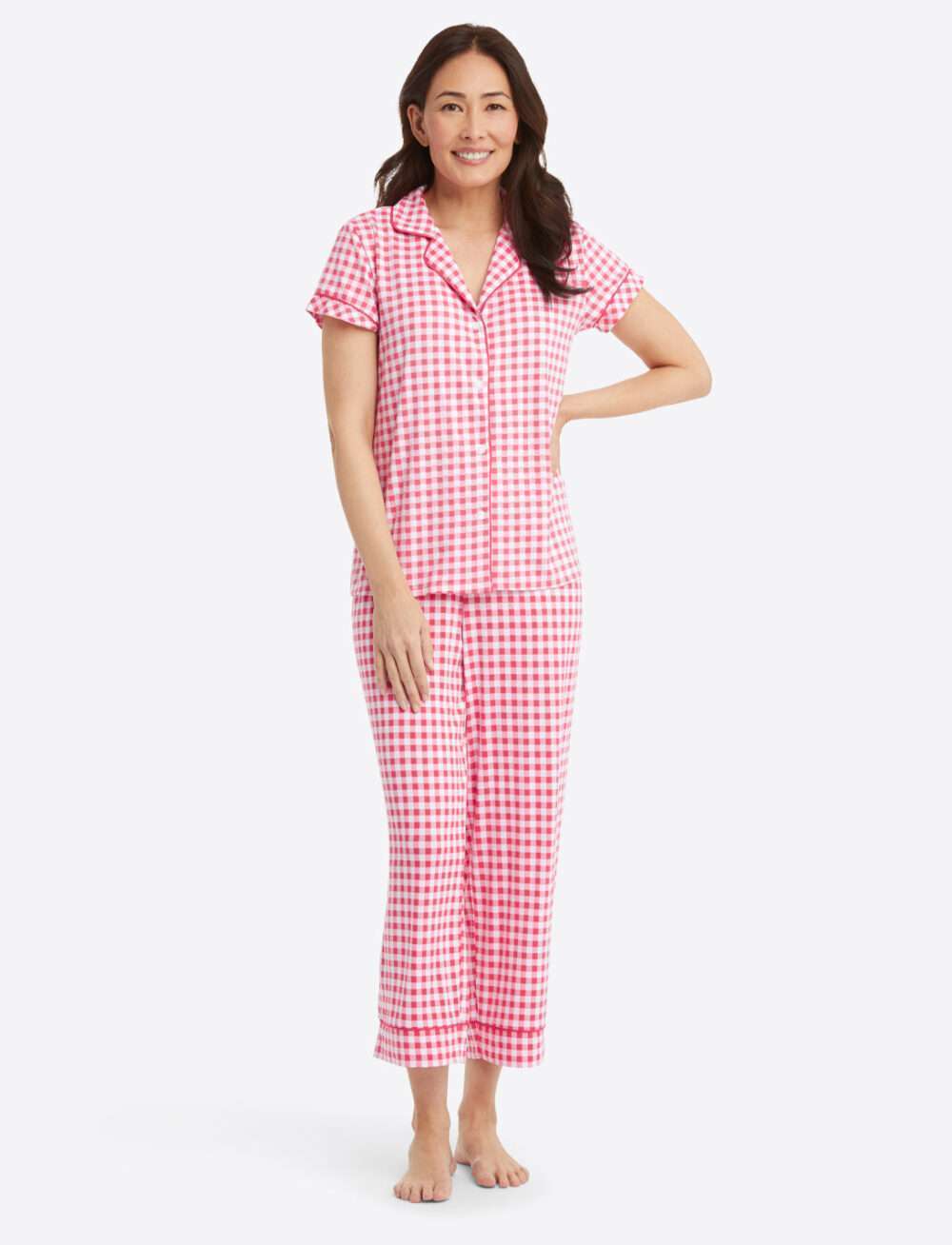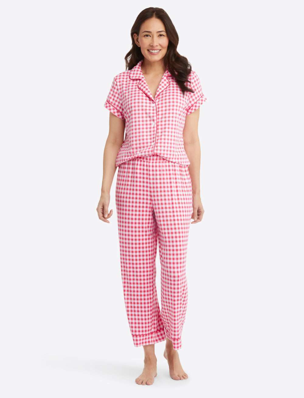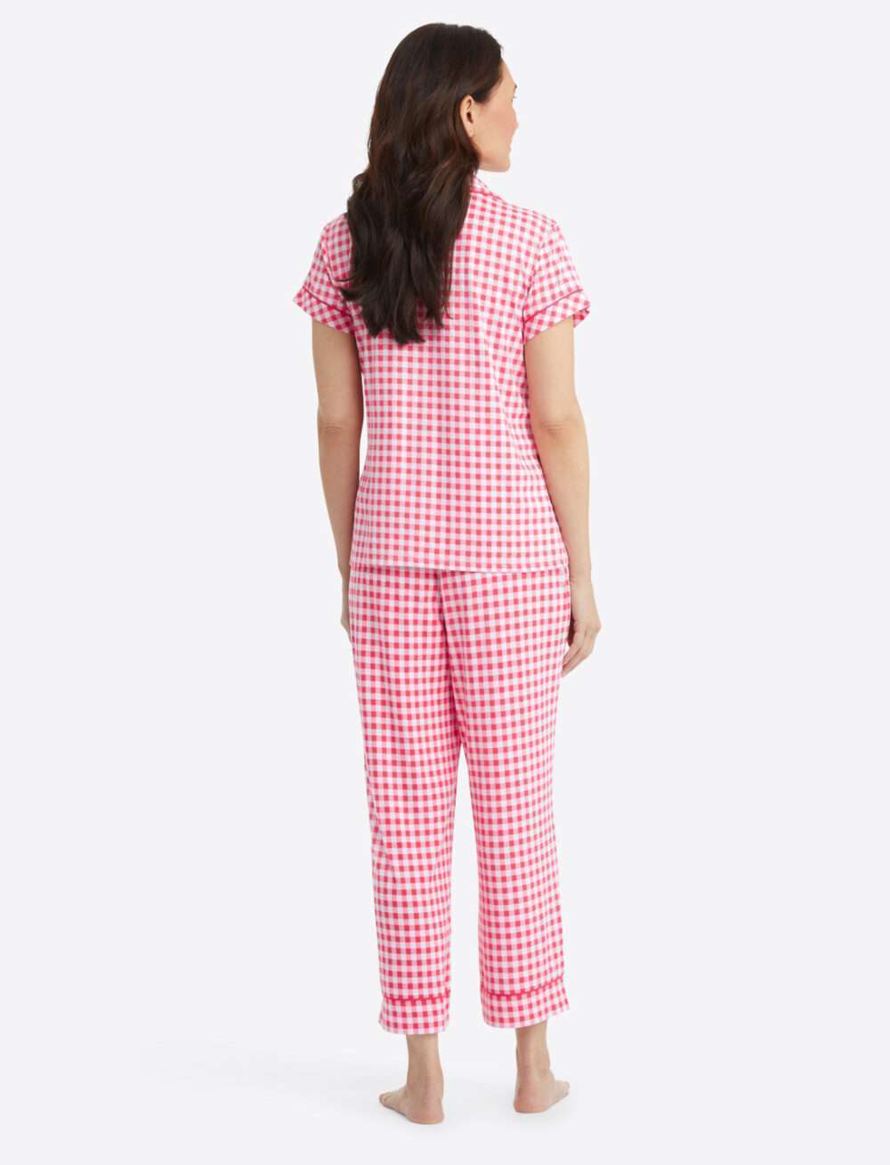 Pajama Jam. Naptime’s never looked so chic than with our Linda pajama set in raspberry pink gingham. Wear it over pancakes, curled up with a movie or even out running errands. We’ll never tell.