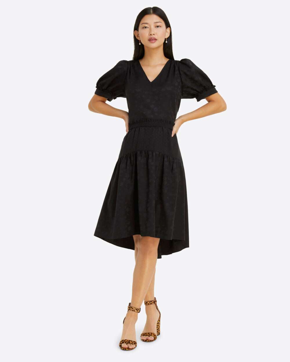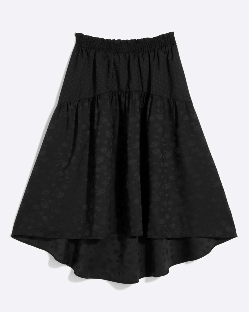 An elevated edit. Cut from a flowy fabric in a jacquard floral print, the Waterfall Skirt in Jacquard Floral is both effortless and versatile. Designed with a flattering A-line silhouette, this skirt features an elegant high-low hem effect, an easy smocked waist, and subtle floral jacquard motifs throughout. Layer casually with an easy tee and jacket or dress up with the matching V-neck Top for date nights or upcoming holiday festivities.
